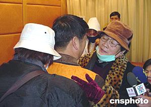 元月20日,臺(tái)灣涉嫌間諜王長勇在福州與來探視的母親等家人相擁會(huì)面。作者:陳國明