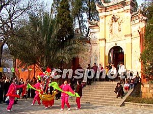 中國農(nóng)歷正月初二,眾多三峽移民身穿節(jié)日盛裝載歌載舞,聚集在白帝城跳秧歌、劃彩船,歡度新春佳節(jié)。作者:周會