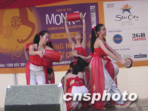 澳洲僑青社24日在悉尼中國(guó)城德信街舉行盛大的新春聯(lián)歡會(huì),數(shù)以萬(wàn)計(jì)的華人華僑和各界人士出席了開(kāi)幕儀式,并觀看了精彩的文藝節(jié)目。此次新春聯(lián)歡會(huì)一連兩日,由北京藝術(shù)團(tuán)、澳洲僑青社、悉尼西區(qū)華人協(xié)會(huì)以及黃河合唱團(tuán)的藝人獻(xiàn)演豐富多彩的歌舞和音樂(lè)節(jié)目,令悉尼各界人士耳目一新。中新社記者劉雨生攝