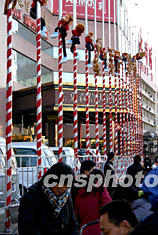 猴年春節(jié)期間,山東濟南的商家大打“猴子”牌,地處鬧市區(qū)的內地與香港合資四星級酒樓玉泉森信大酒店,為招徠顧客,在店前一排金屬旗桿上點綴上十幾個憨態(tài)可掬的吉祥猴。作者:王魯平