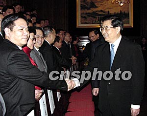 組圖:胡錦濤向旅法華僑華人拜年
