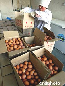 北京一家養(yǎng)雞場的工人對出場雞蛋進行嚴格檢查、檢疫,以確保市民吃上放心蛋。目前,首都工商、衛(wèi)生等部門加強對市場活禽和相關禽類產品的檢查,以防禽流感。中新社記者:宋吉河