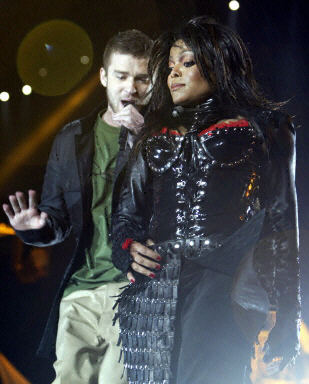 星期天晚上,珍妮穿一款黑色緊身皮裝,和搭檔賈斯廷在美式橄欖球超級(jí)杯大賽中場(chǎng)載歌載舞。歌曲臨近結(jié)束時(shí),只見(jiàn)賈斯廷的手從容地伸到珍妮胸前,用力一扯。珍妮的緊身胸衣就象被“嘭”地炸掉一扇門似的,給扯掉一層。她飽滿的右胸不偏不倚、沒(méi)遮沒(méi)擋地露在觀眾面前。