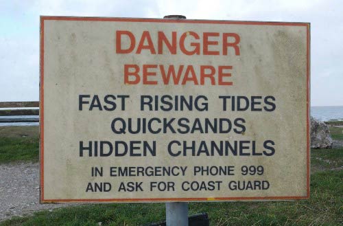 圖:莫克姆灣海灘豎起一塊警示危險的標(biāo)牌