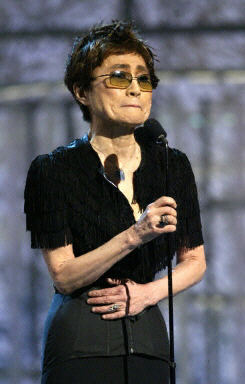 第46屆格萊美頒獎(jiǎng)典禮今天在美國(guó)洛杉磯Staples中心舉行。經(jīng)久不衰的甲殼蟲(chóng)樂(lè)隊(duì)主唱約翰·列儂的遺孀大野洋子上臺(tái)致辭,她說(shuō):“首先恭喜得獎(jiǎng)?wù),甲殼蟲(chóng)樂(lè)隊(duì)為了和平做過(guò)很多貢獻(xiàn),請(qǐng)記住列儂的話,音樂(lè)使我們?cè)谝黄,祝愿音?lè)不會(huì)寂寞。希望世界和平!