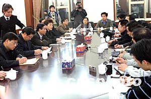 二月八日晚,北京市密云縣的領(lǐng)導(dǎo)就元宵節(jié)發(fā)生的特大踩擠事故舉行新聞媒體通氣會,中共密云縣縣委書記夏強(qiáng)、縣長張文以及相關(guān)領(lǐng)導(dǎo)在通氣會上與記者進(jìn)行面對面的交流,就事發(fā)當(dāng)日以及善后處理工作等問題回答記者的提問。中新社記者:盛佳鵬