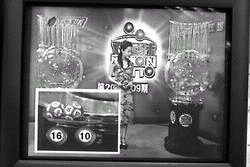 其二,大畫面里每個號球從搖獎機里滾下時,會與前面所出的號球之間有一個碰撞,來回滾動,然后再靜止,而小畫面中的號球滾下時卻顯得相當的平穩(wěn),沒有碰撞和來回滾動現象。