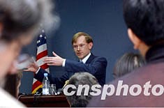 美國貿(mào)易代表佐利克二月十二日在北京舉行新聞發(fā)布會,就世貿(mào)組織新一輪多邊貿(mào)易談判等相關問題回答中外記者提問。中新社記者:武仲林