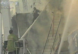 吉林市中百商廈特大火災(zāi)現(xiàn)場(chǎng)(1)電視截圖