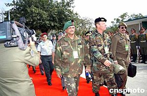 應(yīng)中國國防部邀請,56個(gè)國家的100多名駐華武官、副武官偕夫人,16日對(duì)解放軍駐港部隊(duì)進(jìn)行參觀訪問。這是解放軍部隊(duì)首次接待外國駐華武官團(tuán)。
