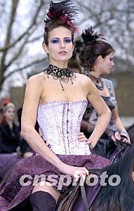 2004年2月,在英國倫敦秋冬時裝周上,著名時裝品牌Harriets Muse別出心裁,在倫敦街頭舉行服裝展示,引來許多路人關注。Ic/cnsphoto 攝