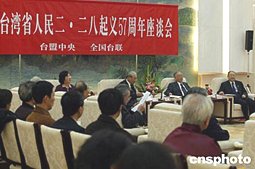 臺盟中央常務(wù)副主席林文漪,副主席劉亦銘、吳國禎、李敏寬,全國政協(xié)港澳臺僑委員會副主任李贛騮,全國政協(xié)人口資源環(huán)境保護(hù)委員會副主任張洽,以及部分“二二八事件”的參加者,在京臺胞、臺商、臺生近兩百人出席座談會。