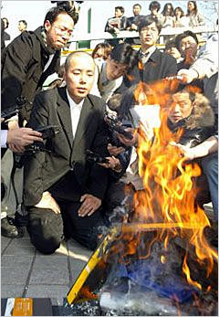 19日下午3時,在位于漢城江南區(qū)驛三洞的公司總部停車場,Netian娛樂公司在60多名記者的目睹下燒毀了1個拉面箱分量的第一次拍攝的照片和視頻膠卷。