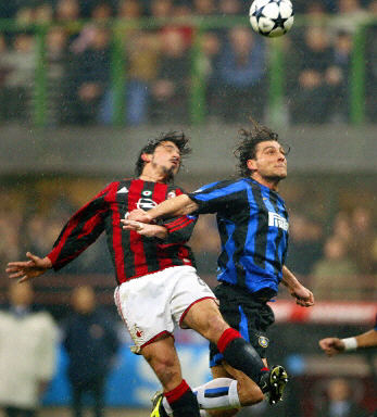本場比賽,AC米蘭隊隊長馬爾蒂尼因禁賽未能上場,卡福擔(dān)當(dāng)防守重任。AC米蘭隊開局打得不錯,但首先破門得分的卻是國米隊。塞黑球員斯坦科維奇發(fā)出的角球直接飛入球門遠角。兩分鐘后扎內(nèi)蒂25米外起腳勁射破門。上半場國米隊已經(jīng)確立了兩球的優(yōu)勢,看到了勝利的曙光。