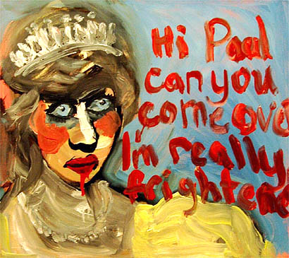這幅名為《嗨,保羅你能過來嗎?》的畫像意在表現(xiàn)戴妃在生命最后幾個(gè)月的瘋狂狀態(tài)。兩周前,收藏界大亨查爾·沙奇以600英鎊的高價(jià)從這名失業(yè)婦女斯特拉?維恩(Stella Vine)的手中購(gòu)得。此前,她從來沒有出售過她的任何一幅作品。