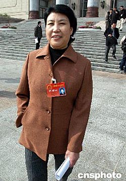 全國人大代表郭鳳蓮三月四日在北京人民大會(huì)堂出席十屆全國人大二次會(huì)議預(yù)備會(huì)。郭鳳蓮是當(dāng)年赫赫有名的“鐵姑娘”,如今是山西大寨經(jīng)濟(jì)開發(fā)總公司董事長。中新社記者:張宇