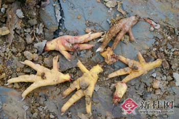 3月6日,廣西檢驗(yàn)檢疫局組織人員,兵分兩路,一路查看現(xiàn)場證實(shí)確有人動(dòng)過雞爪后,將現(xiàn)場作了消毒和封鎖;另一路與公安部門一起向舉報(bào)者了解情況。