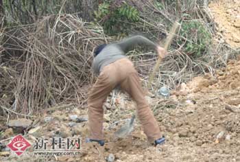 這一情況被反饋給負(fù)責(zé)管轄這一帶的南寧市興寧公安分局腰塘派出所。干警隨即前往現(xiàn)場查看,從外觀上看,深埋雞爪的地方的確有翻挖過的痕跡,而且原來在附近的兩個(gè)大土包不見了。由于地下深埋的東西涉嫌疫情,派出所在安排人員看守現(xiàn)場后,將情況反映給檢驗(yàn)檢疫部門。