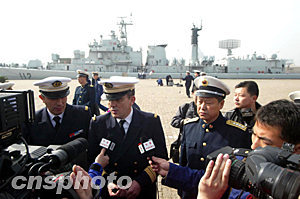 來訪的法國海軍艦艇編隊將于16日與中國海軍“哈爾濱”號導彈驅逐艦、“洪澤湖”號綜合補給艦以及“海豚”艦載直升機在青島附近的黃海海域進行非傳統(tǒng)安全領域的聯(lián)合演習。