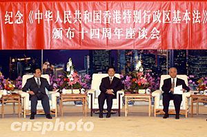 盛華仁在北京舉行的紀(jì)念香港基本法頒布十四周年座談會上作上述表示。