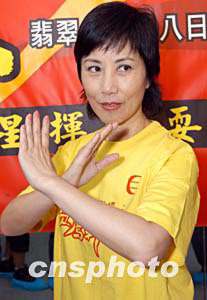 藝員汪明荃3月17日在香港出席古裝武俠劇《血薦軒轅》宣傳活動,到李暉武術(shù)文化中心接受武術(shù)名師李暉小姐指導(dǎo),汪明荃活學(xué)活用,擺姿勢拍照倍感威武。作者:鄧慶樂
