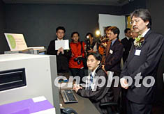 香港工商及科技局局長(zhǎng)曾俊華等嘉賓,3月29日在香港數(shù)碼港數(shù)碼媒體中心參觀新啟用的設(shè)施。作者:洪少葵