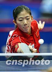 2004年雅典奧運會乒乓球亞洲區(qū)預選賽四月九日在北京舉行,中國隊女選手牛劍鋒首戰(zhàn)輕取對手。中新社記者:毛建軍