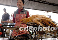 四月十一日,北京一家農貿市場開始出售活禽。禽流感疫情已得到有效控制,在北京市各大農副市場中沉寂許久的“活禽區(qū)”,從十日起陸續(xù)恢復經營,但現(xiàn)場宰殺活禽仍然有嚴格的要求。中新社記者:張宇