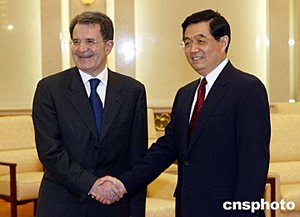 普羅迪表示,目前歐盟同中國(guó)的關(guān)系處于歷史最好時(shí)期。雙方不僅在經(jīng)濟(jì)上,而且在政治、文化以及科技等領(lǐng)域都進(jìn)行了良好和富有成果的合作。歐盟重視中國(guó)在國(guó)際上的重要地位和作用,希望進(jìn)一步密切同中國(guó)的戰(zhàn)略關(guān)系,全面加強(qiáng)同中國(guó)在各領(lǐng)域的合作。