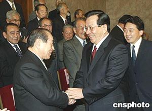 曾慶紅今天下午在人民大會堂會見了由日中友協(xié)名譽顧問、自民黨前干事長野中廣務(wù)率領(lǐng)的社團(tuán)法人日中友好協(xié)會全國代表訪華團(tuán)。他贊揚野中廣務(wù)以及日中友協(xié)的朋友們?yōu)榘l(fā)展中日友好關(guān)系做出了寶貴貢獻(xiàn),并對日本相撲協(xié)會理事長北之湖敏滿將率日本大相撲來華公演表示歡迎。