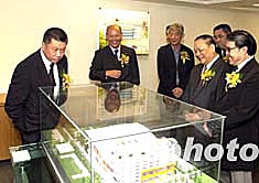 圖為澳門特區(qū)行政長(zhǎng)官何厚鏵、中央駐澳門特區(qū)聯(lián)絡(luò)辦主任白志健等在新總部參觀第四屆東亞運(yùn)動(dòng)會(huì)場(chǎng)館模型。