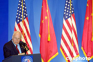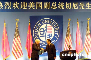 中新網(wǎng)4月15日電 來(lái)自上海的最新消息說(shuō),美國(guó)副總統(tǒng)切尼15日上午在復(fù)旦大學(xué)開始演講。
