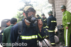 今天下午,重慶市對天原化工總廠殘存有液態(tài)氯的三個貯氣罐進(jìn)行了人工引爆,三個貯氣罐目前已被摧毀,險情被排除。十五日晚重慶天原化工總廠發(fā)生氯氣泄漏爆炸事件,十五萬群眾被疏散。圖為進(jìn)入事故現(xiàn)場的消防員全副武裝。作者:鄒輝