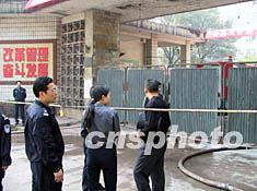 記者再次來到事故發(fā)生地——重慶天原化工廠大門前,昨天記者在這里見證了一場驚心動魄的戰(zhàn)斗,經(jīng)過六小時(shí)緊張的爆破和搶險(xiǎn),重慶市終于解除了威脅市民六十多個(gè)小時(shí)的氯氣警報(bào)。