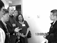 4月17日上午10點(diǎn),美國(guó)聯(lián)邦調(diào)查局駐華聯(lián)絡(luò)官威廉、美國(guó)移民局駐華事務(wù)官瞿建玲來(lái)到東城區(qū)看守所,參觀、了解關(guān)押情況?吹接嗾駯|和其他犯罪嫌疑人一樣坐在地上,威廉叫他站起來(lái)走一走,并和他有這樣一段對(duì)話: