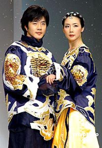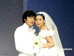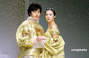 2004年4月22日,韓國服飾設(shè)計大師ANDREKIM的服裝發(fā)布會在上海舉行。權(quán)相宇與崔智友T臺上演藝?yán)寺矍椤?楊明靜 攝