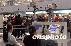 北京四月二十二日確診一例SARS疑似病例后,北京市迅速啟動相應(yīng)的SARS預(yù)警機(jī)制。二十三日,北京機(jī)場在候機(jī)大廳新啟用紅外熱成像自動搜索測溫系統(tǒng),對所有進(jìn)出旅客實(shí)行嚴(yán)格的體溫測試。中新社記者:張勤