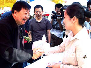 四月二十三日下午,著名相聲大師馬季來(lái)到北京地壇書市現(xiàn)場(chǎng)為讀者導(dǎo)購(gòu)圖書并簽字售書,慶祝世界圖書日的到來(lái)。作者:韓藝冰