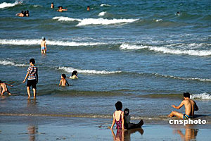 黃金周頭三天,海南每天艷陽高照,最高氣溫達(dá)到35度左右,許多游客紛紛來到海濱享受日光浴和海水浴。蒙鐘德 攝