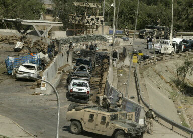 爆炸于當(dāng)?shù)貢r(shí)間6日早晨7時(shí)半左右發(fā)生在聯(lián)軍總部入口處的一個(gè)檢查站。目擊者稱一輛出租車模樣的汽車忽然在聯(lián)軍總部大院外爆炸,炸毀了周圍數(shù)輛汽車。