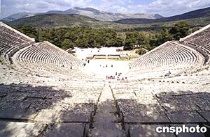 神話、史詩(shī)、戲劇是古希臘的重要文明,伯羅奔尼撒半島東南方的埃庇達(dá)洛斯劇場(chǎng)為公元前四世紀(jì)所建,呈圓扇面形,共有55層座位,每層兩階梯,可容納14000人。其音效奇佳,在圓心處低語或掉下一塊銅幣,坐在最后一排也能聽得真切。作者:田地