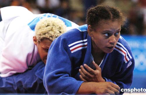 圖為當(dāng)?shù)貢r間8月19日在雅典舉行的柔道78公斤以下級比賽法國選手來布朗(藍(lán))在與巴西選手的對決。
