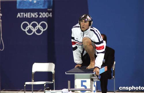 圖為當(dāng)?shù)貢r(shí)間8月19日,美國(guó)游泳選手菲爾普斯參加男子200米混合泳時(shí)登上跳臺(tái)的情景。