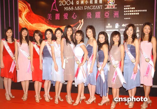“2004亞洲小姐競選”香港區(qū)12位佳麗20日在香港亮相﹐她們將在新選制下角逐六位代表晉身十月二十四日的總決賽。中新社記者:趙振清