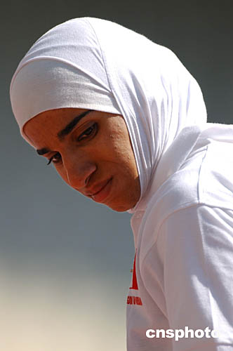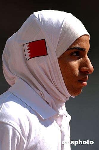 圖為巴林選手Rakia Al Gassra在女子100米比賽前觀看場(chǎng)地的畫面。