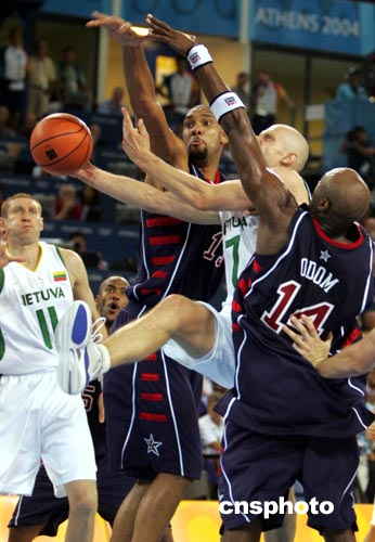 中新社雅典八月二十一日電 繼雅典奧運首場小組賽被波多黎各擊潰后,美國夢六隊今天再度落敗。立陶宛憑借其神準(zhǔn)的三分球以九十四比九十戰(zhàn)勝美國隊,這也使美國男籃遭遇到其奧運史上的第四場失利。