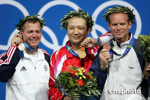 當?shù)貢r間八月二十二日下午,在雅典奧運會男子三乘四十射擊比賽中,中國的賈占波以一千二百六十四點五環(huán)的成績獲得金牌。中新社記者:毛建軍