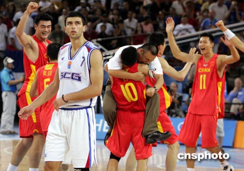 當?shù)貢r間二十三日下午,在雅典赫利尼科體育中心籃球館里發(fā)生了一件大事:中國男籃戰(zhàn)勝塞黑隊躋身第二十八屆奧運會八強行列!