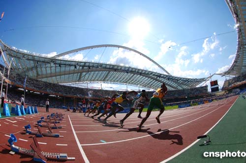 圖為當(dāng)?shù)貢r(shí)間8月24日舉行的200米資格賽現(xiàn)場(chǎng)。