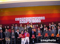 北京市海外聯(lián)誼會(huì)會(huì)長(zhǎng)、北京華僑華人共建奧運(yùn)場(chǎng)館副主任尤藍(lán)田(前排左6)、中國(guó)駐悉尼代總領(lǐng)事杜慰(前排左4)和悉尼華人社團(tuán)領(lǐng)袖,8月24日晚向澳大利亞華人華僑共建2008北京奧運(yùn)場(chǎng)館“水立方”的第一批82名捐助者頒發(fā)榮譽(yù)證書(shū)并合影留念。據(jù)悉,海外華僑華人已經(jīng)認(rèn)捐7500萬(wàn)美元,實(shí)際到帳1500萬(wàn)美元。她代表北京市政府對(duì)華人華僑的大力支持表示感謝。作者:劉雨生